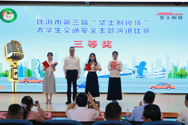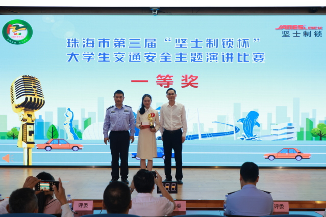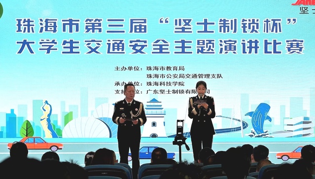 为进一步加强大学生交通安全宣传教育工作,提升大学生交通安全文明意识,预防大学生各类交通违法及交通事故,11月14日下午,珠海市教育局、珠海市公安局交通管理支队主办的珠海市第三届大学生交通安全主题演讲比赛在我校圆满举行,珠海市公安局交管支队副支队长王巍,珠海市教育局四级调研员李永奇,广东坚士制锁有限公司安环会主任欧阳海军,金湾大队教导员梁华成,学校党委委员、副校长方壮坚出席活动,十所高校相关负责人、指导老师及参赛选手共同参与,活动由珠海市公安局交管支队陈冰、魏天骄同志主持。