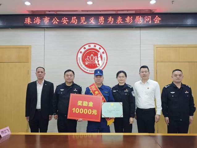 珠海市公安局向符江飞颁发荣誉证书、奖励金